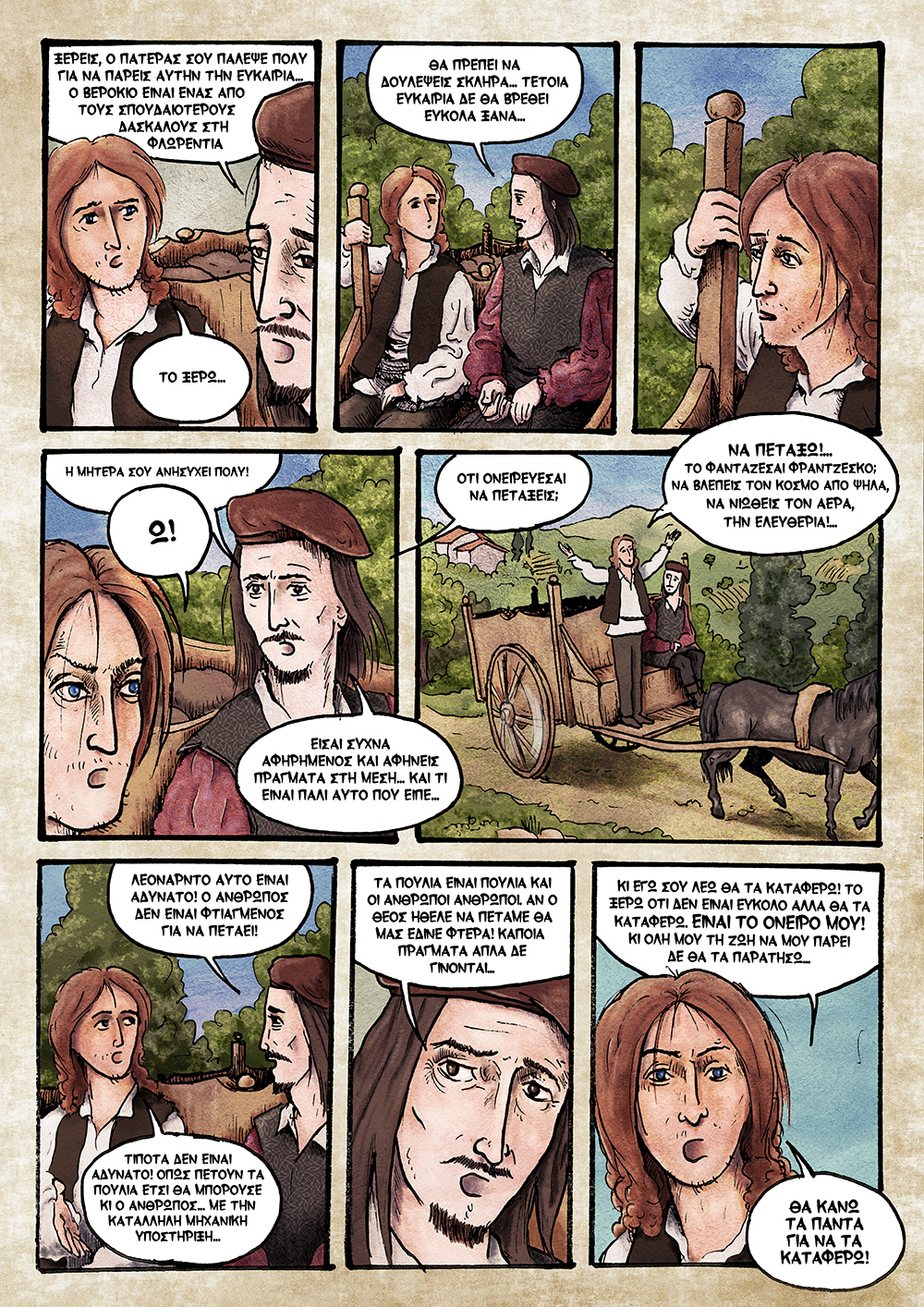“Leonardo, The dream and the nightmare” is a comic that started as an idea quite some time ago when I decided to turn an older text of mine entitled “Journey through the air” into a comic.